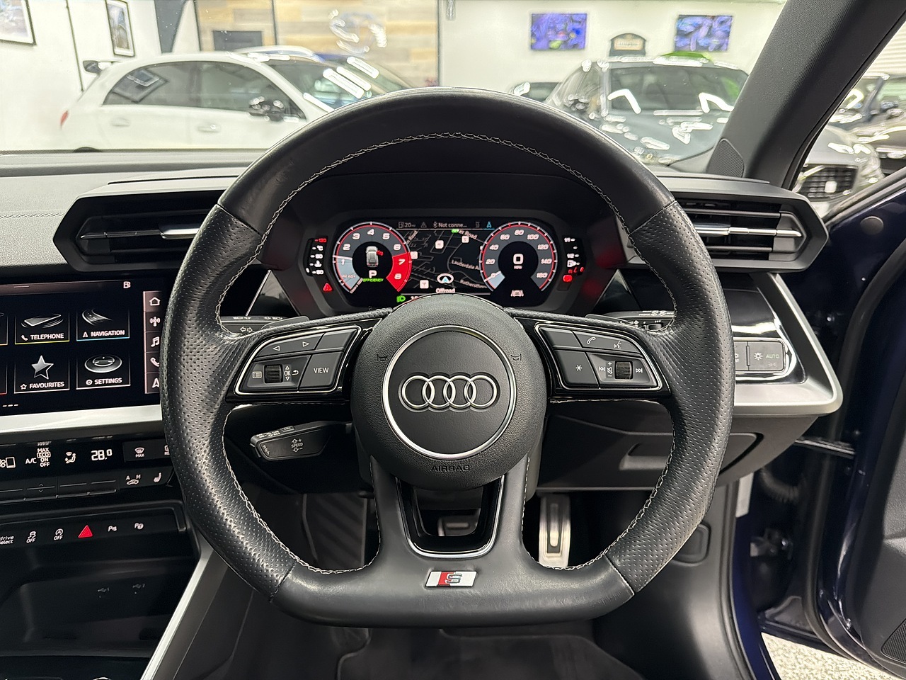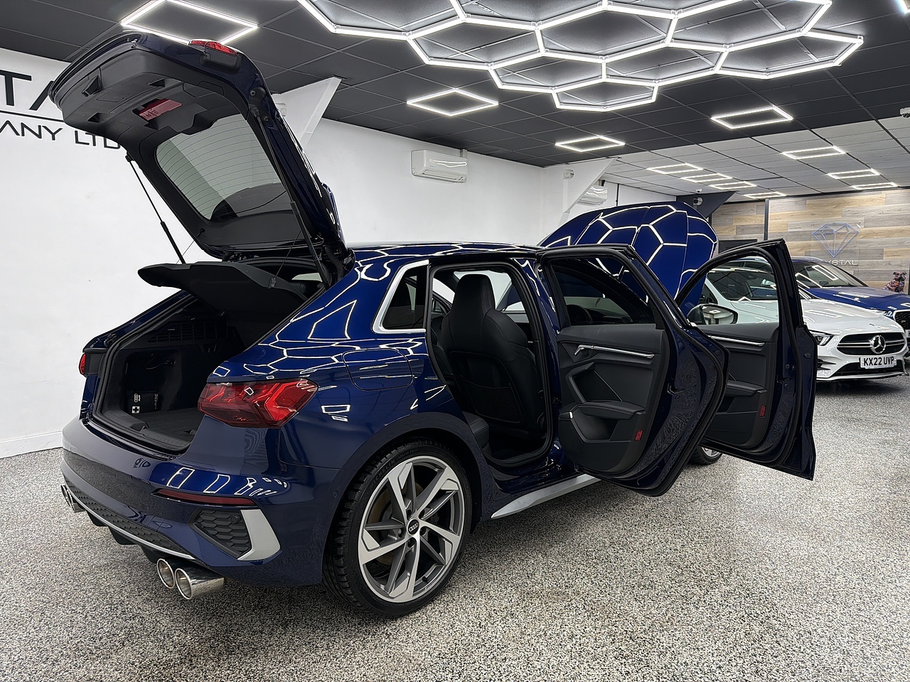 Crystal motor company are delighted to offer for sale this beautifully presented 2021 Audi S3 2.0 TFSI Sportback 5dr Petrol S Tronic quattro Euro 6 (s/s) (310 ps) finished in NAVARRA BLUE. This car comes with TWO KEYS, ONE FORMER KEEPER, SERVICE HISTORY, HALDEX SERVICED ON 28/03/2025 AT 40,781 MILES, FULL SERVICE AND SPARK PLUGS REPLACED ON 06/05/2025 AT 42,319 MILES. This car is equipped with 19” ALLOY WHEELS, BLACK BRAKE CALLIPERS, FRONT AND REAR PARKING SENSORS, REAR REVERSING CAMERA, ELECTRIC FOLDING WING MIRRORS, REAR PRIVACY GLASS, MATRIX LED HEADLIGHTS, BLACK LEATHER SEATS, HEATED FRONT SEATS, FLAT BOTTOM STEERING WHEEL, PADDLE SHIFT, CRUISE CONTROL, VIRTUAL COCKPIT,